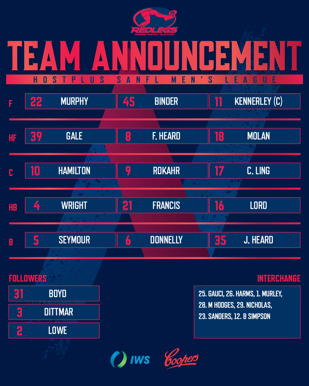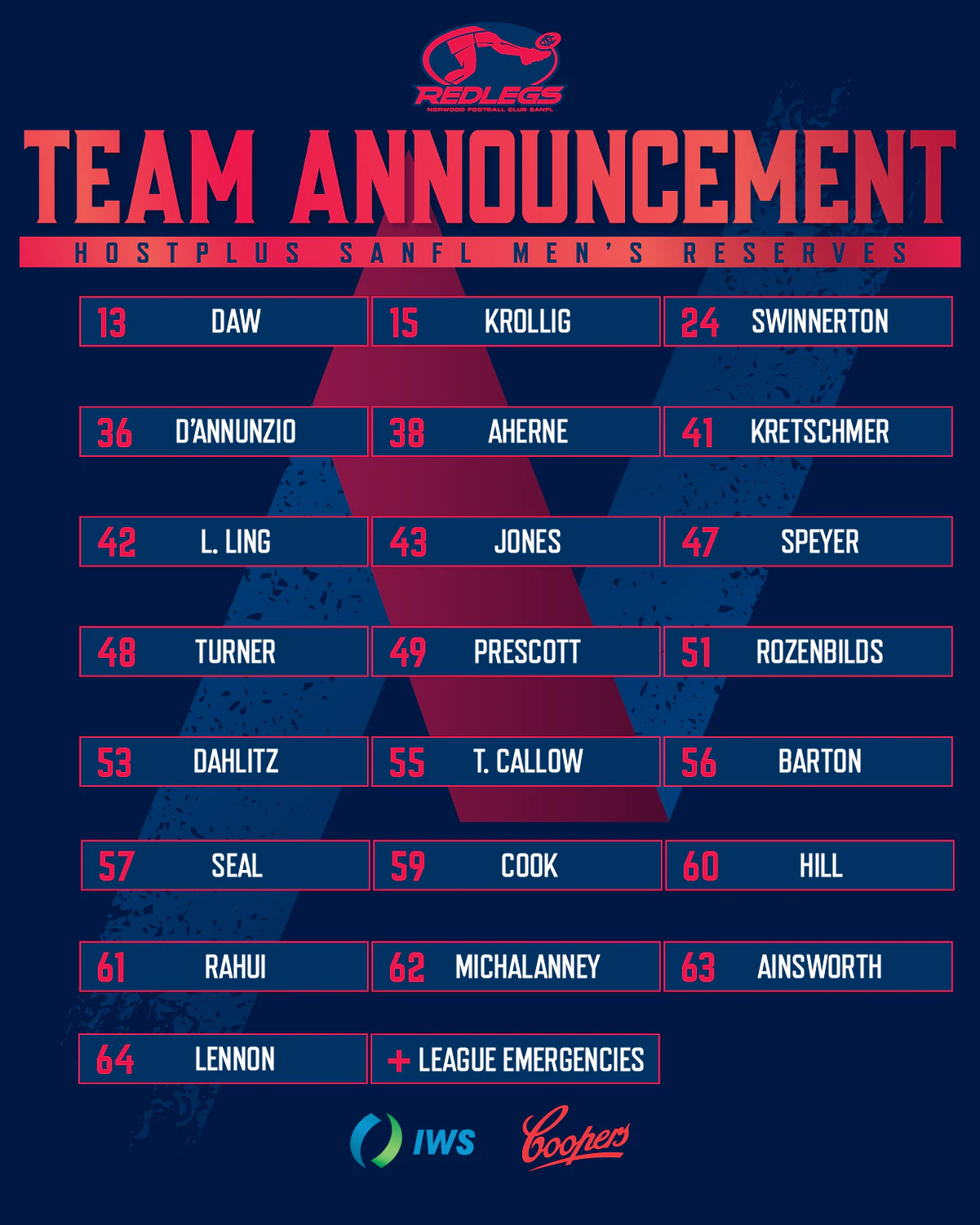Norwood has made one forced change for the game, with Jackson Callow out with a hand injury he sustained in Round 1. He has been replaced by Tristan Binder at full forward, who kicked three goals in last Friday’s Reserves match.