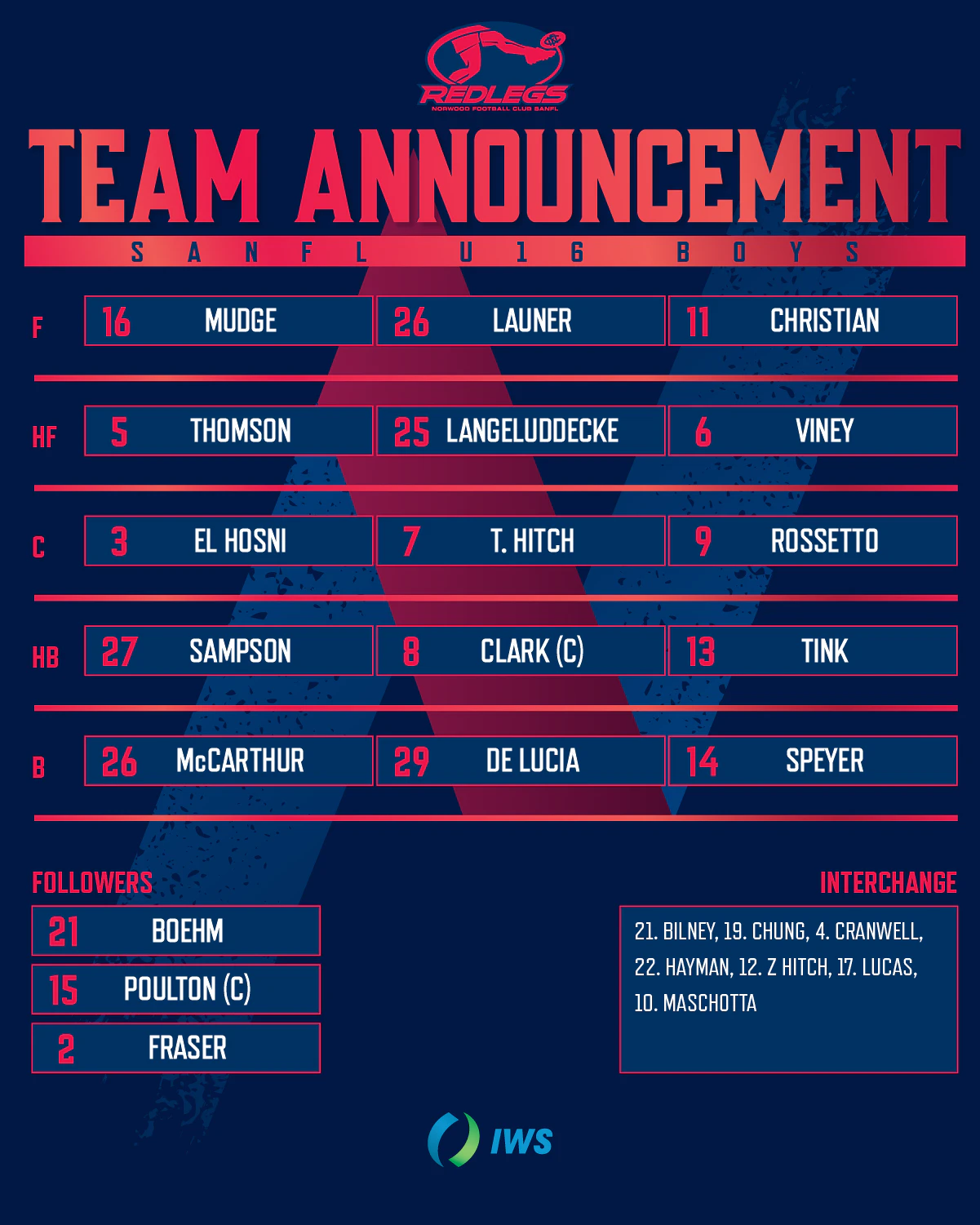 Teams: SANFLW Trial, U18 Girls, U18 Boys, U16 Boys